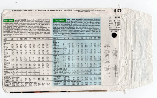 Butterick 5175 JESSICA HOWARD Vestido de noche con volantes para mujer Patrón de costura vintage de los años 90 Talla 6-10 Pliegues de fábrica SIN CORTAR