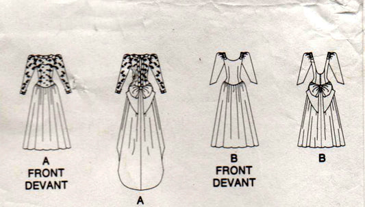 Patrón de costura vintage de los años 80 para vestido de novia con ribete de encaje y cola opcional Butterick 5990, talla 8-12