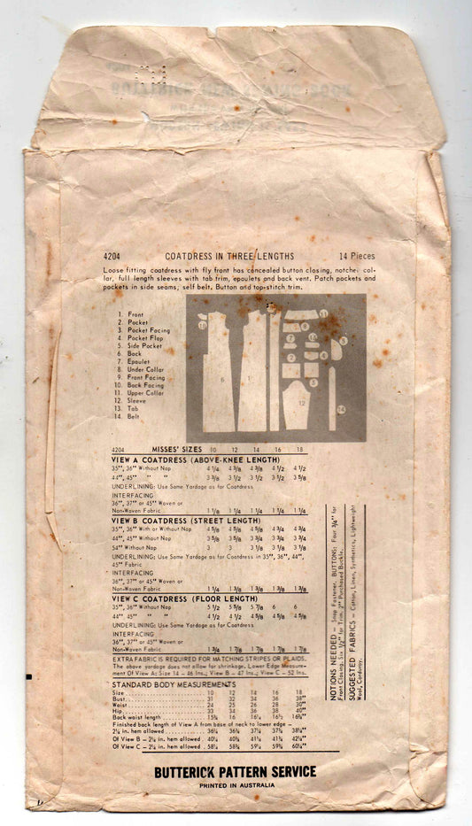 Patrón de costura vintage de los años 60 para vestido y abrigo de mujer Butterick 4204 GAYLE KIRKPATRICK en 3 largos, busto de 32 pulgadas