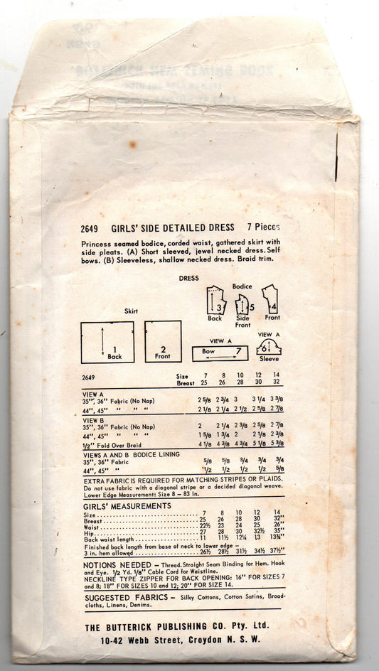 Patrón de costura vintage de los años 60 para vestido de princesa con falda larga para niña Butterick 2649, para confirmación de niña de las flores, talla 10