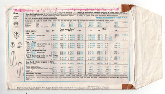 Simplicity 6807 Young Junior / Teens Yoked Smock Top Shorts & Pants 1970s Vintage Sewing Pattern Size 11/12 Bust 32 inches