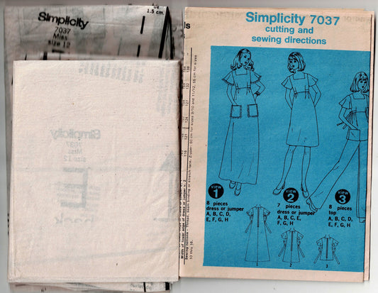 Simplicity 7037 Womens High Waisted Square Neck Flutter Sleeve Dress & Top 1970s Vintage Sewing Pattern Size 12 Bust 34 Inches