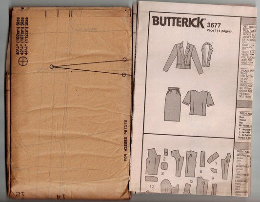 Butterick 3677 EVAN-PICONE Womens Skirt Suit with Blouse 1980s Vintage Sewing Pattern Size 12 - 16 UNCUT Factory Folded