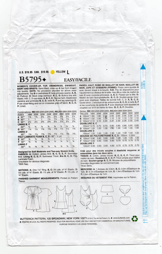Patrón de costura sin cortar Butterick B5795 para mujer, tallas grandes, para traje de baño, falda y braguita, sin cortar, doblado de fábrica