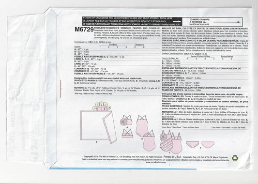 Trajes de baño, bragas y pareos elásticos para niñas pequeñas de McCall 6729, patrón de costura agotado, talla 4/5/6, sin cortar, doblado de fábrica