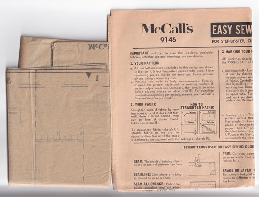 McCall's 9146 Womens Body Shirt & Skirt 1960s Vintage Sewing Pattern Size 16 Bust 38 inches (Waistband Missing)