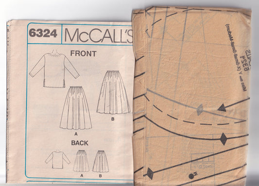 McCall's 6324 Womens Loose Fitting Casual Tops & Pull On Skirts 1990s Vintage Sewing Pattern Size XS - MED UNCUT Factory Folded