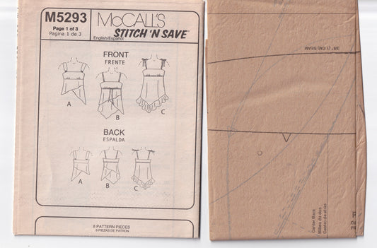 McCall's 5293 Womens Empire Waisted Summer Handkerchief Tops Out Of Print Paper Sewing Pattern Sizes 12 - 18 UNCUT Factory Folded