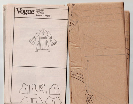 Vogue 7743 Womens Pullover Flared Sleeve Tunic Caftan Tops Out Of Print Sewing Pattern Size 18 - 22 UNCUT Factory Folded