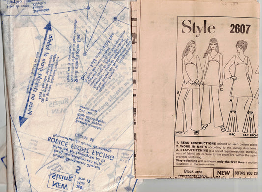 Style 2607 Womens Flared Sleeve Dress Tunic & Pants 1960s Vintage Sewing Pattern Size 12 Bust 34 inches