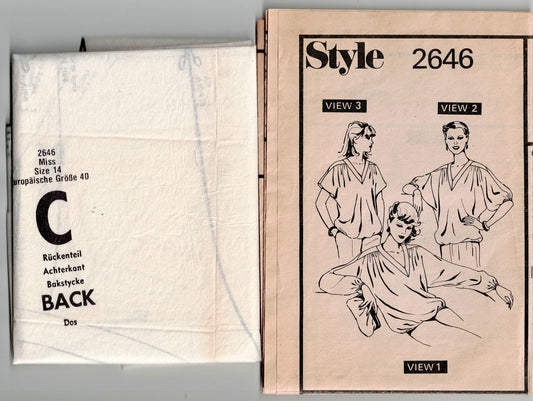 Style 2646 Womens Loose Fitting Pullover Tops 1970s Vintage Sewing Pattern Size 14 Bust 36 Inches