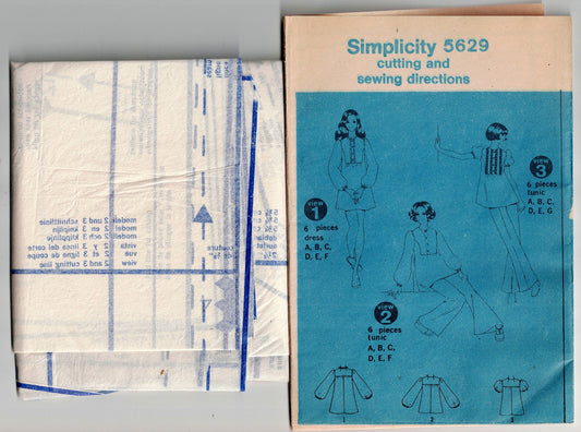 Simplicity 5629 Young Junior / Teens Yoked Smock Top or Mini Dress 1970s Vintage Sewing Pattern Size 11/12 Bust 32 inches