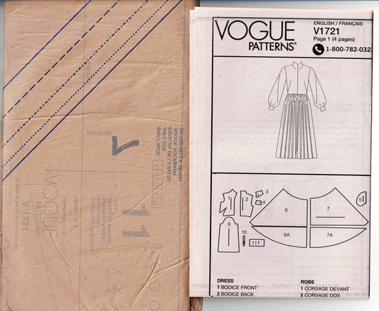 Patrón de costura original 1721 de Vogue Paris para vestido de invierno elástico de GUY LAROCHE con escote alto para mujer, talla 8-16, sin cortar, doblado de fábrica