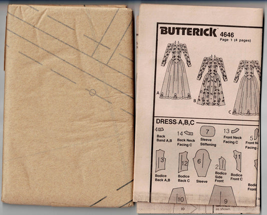 Patrón de costura vintage de los años 80 para vestido de novia con mangas abullonadas y cola opcional Butterick 4646 para mujer, talla 16, busto de 38 pulgadas
