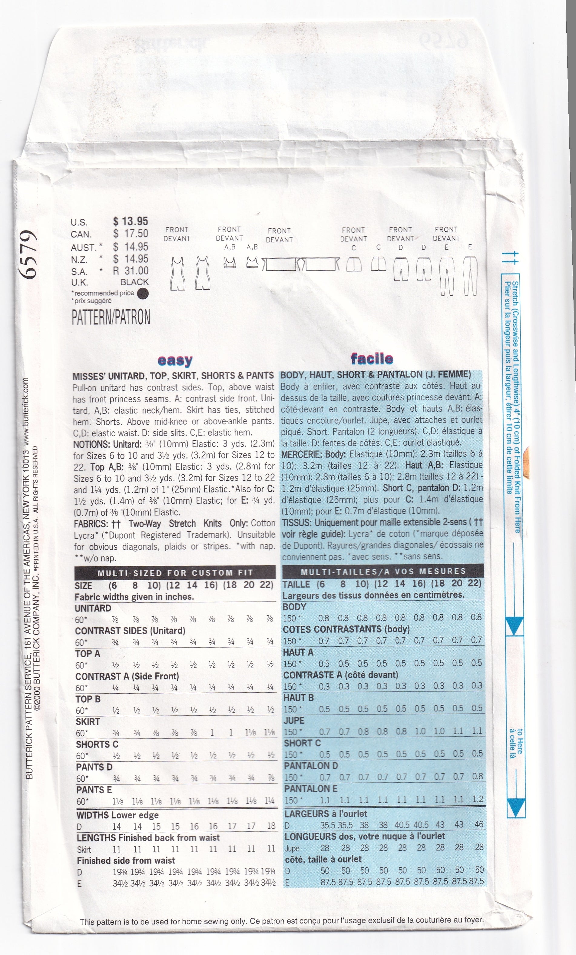 Butterick 6579 out of print paper sewing pattern, dated ca 2000.