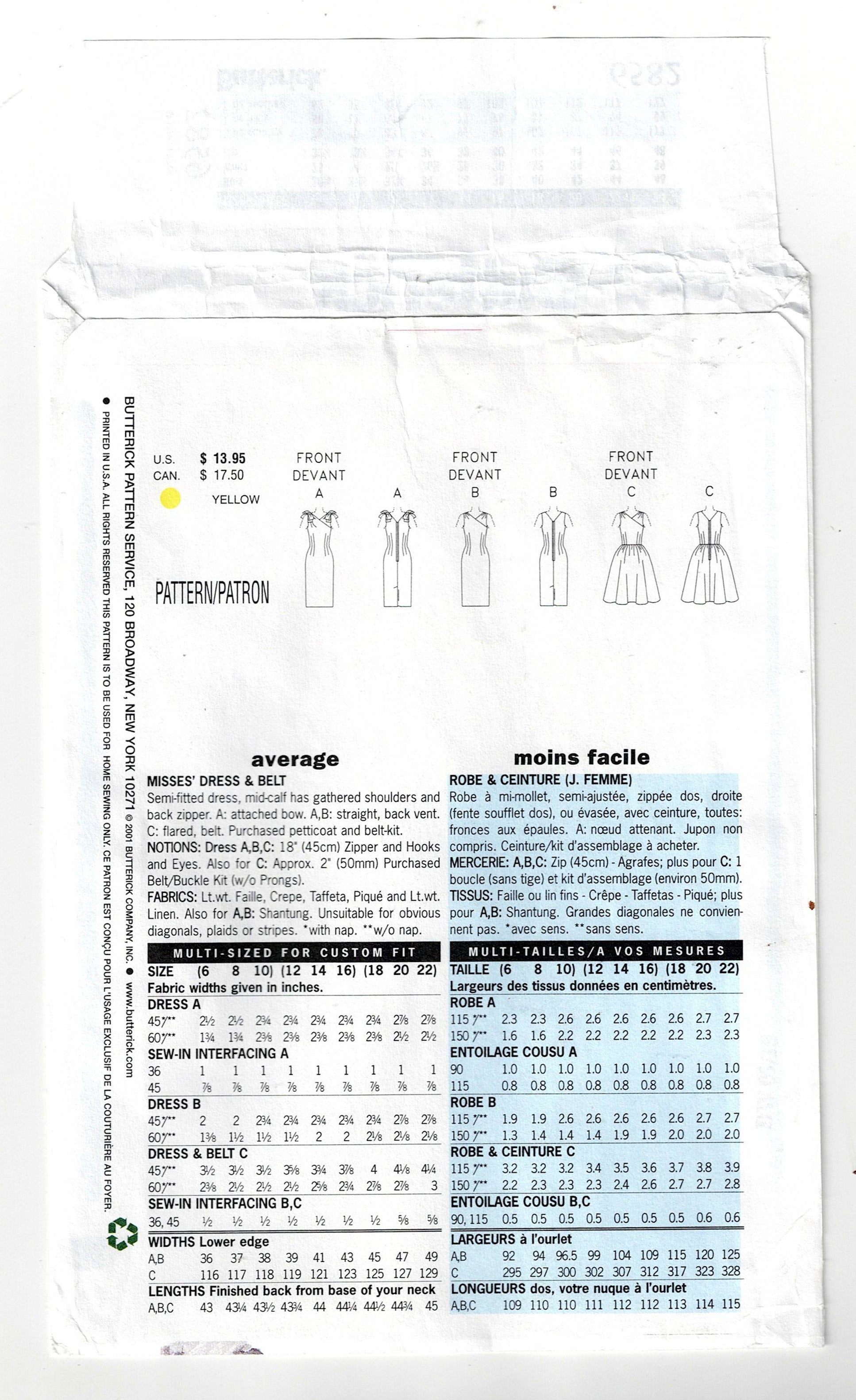 Butterick 6582 sewing pattern, dated 2001, now out of print.