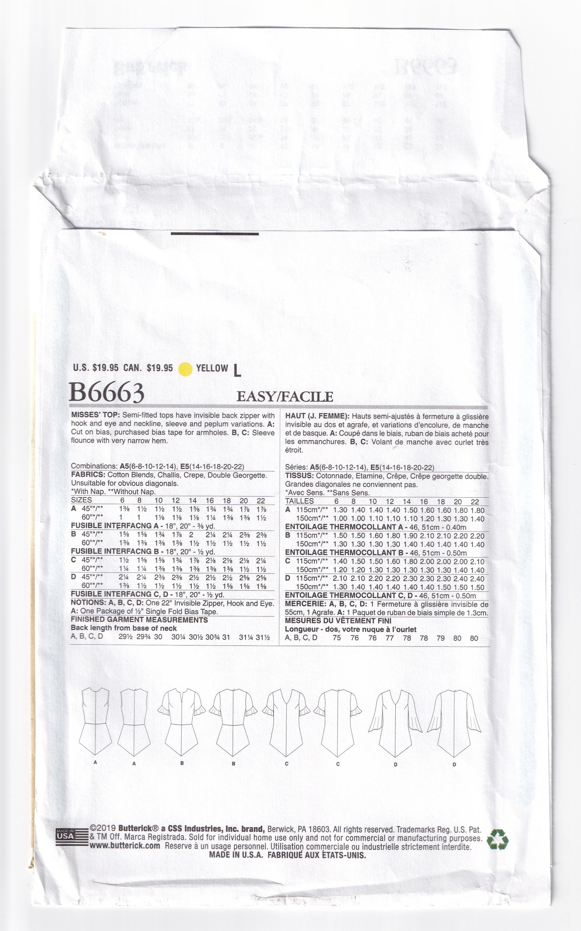 Butterick 6663 paper sewing pattern, dated 2016, now out of print.