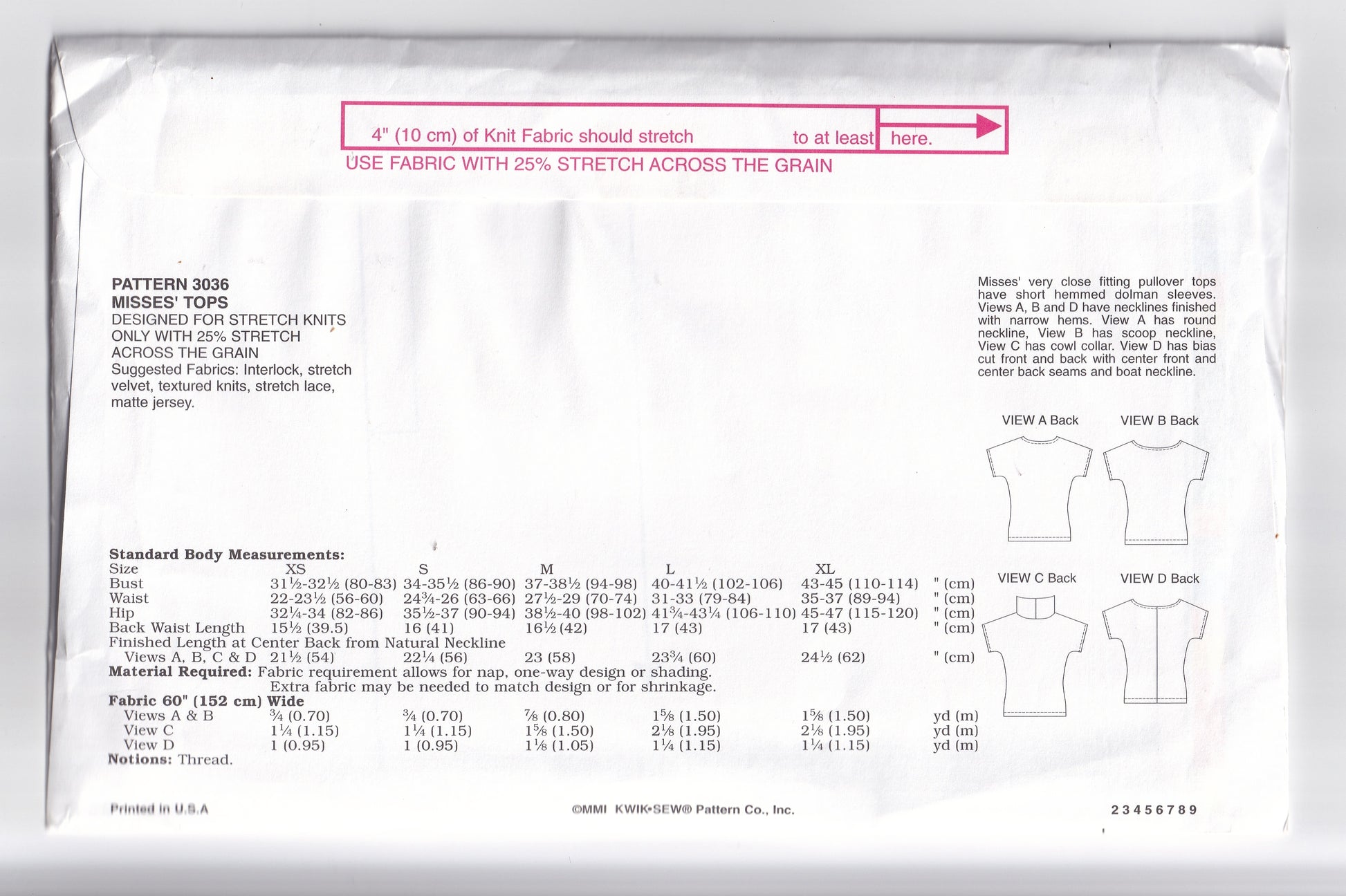 Designed for stretch knit fabrics only.
