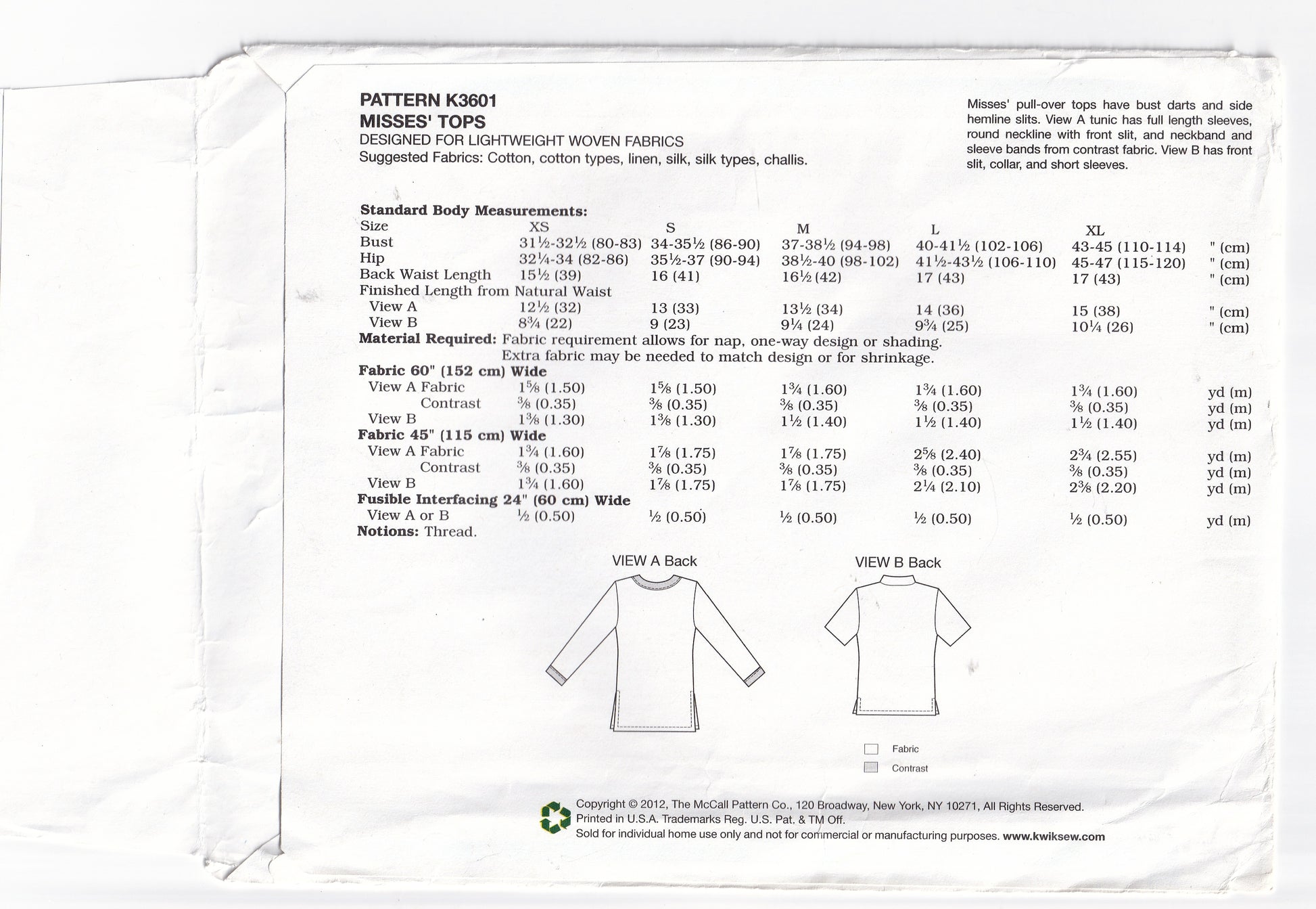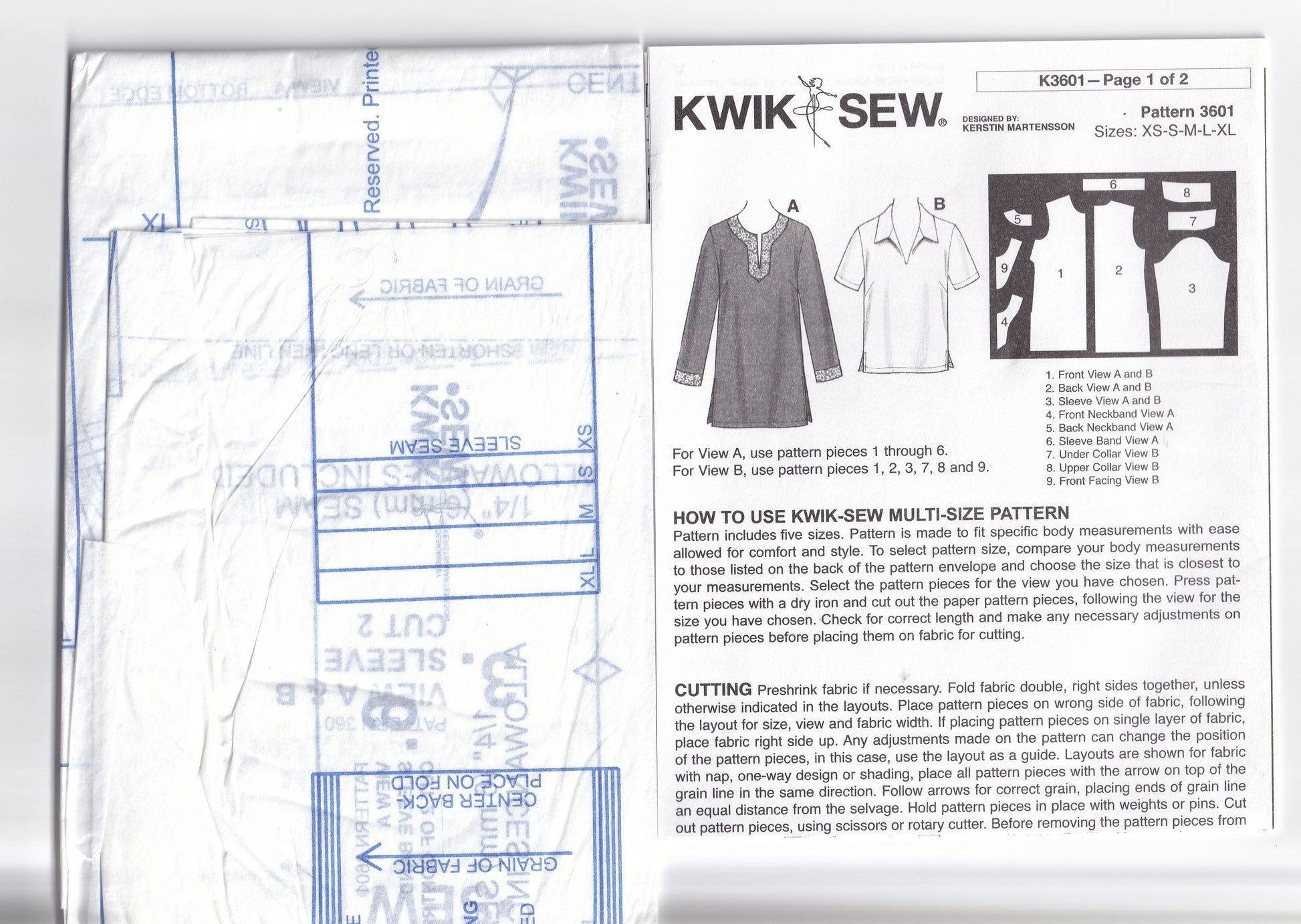 Kwik Sew 3601 sewing pattern; ©2012, now out of print.