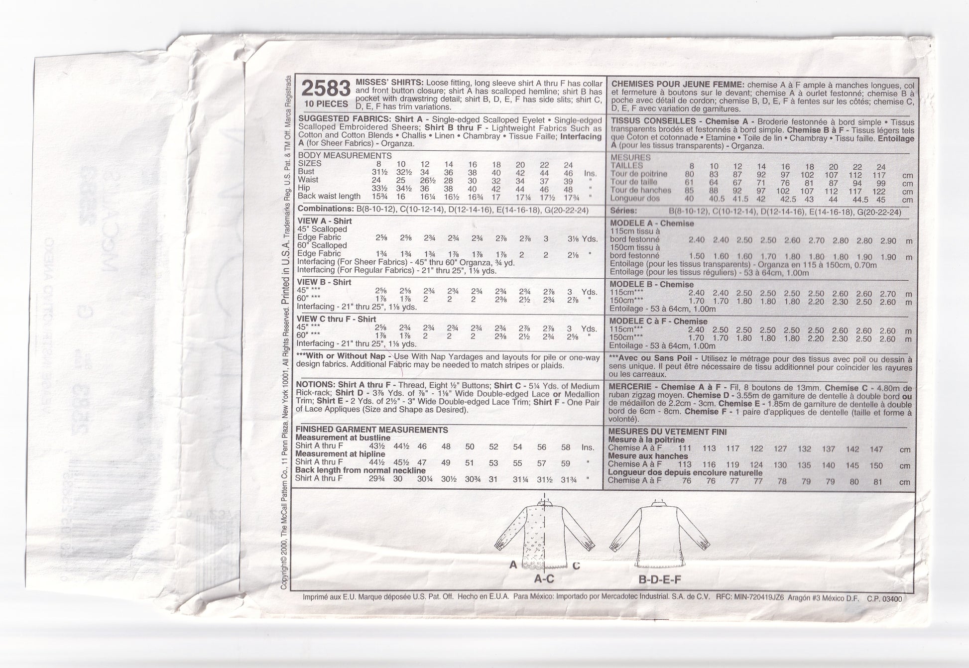 McCall's 2583 paper sewing pattern, dated 2000, now out of print.