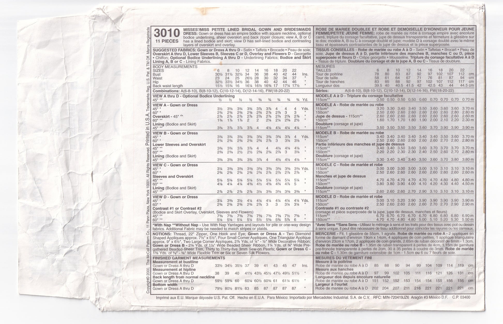 McCall's 3010 sewing pattern, dated 2002, now out of print.