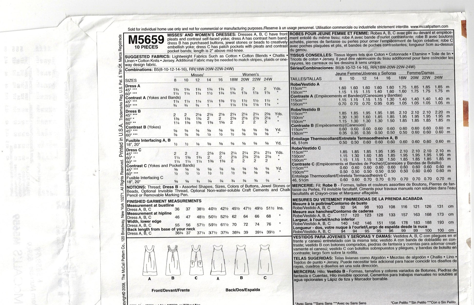 McCall's 5659 sewing pattern, dated 2008, now out of print.