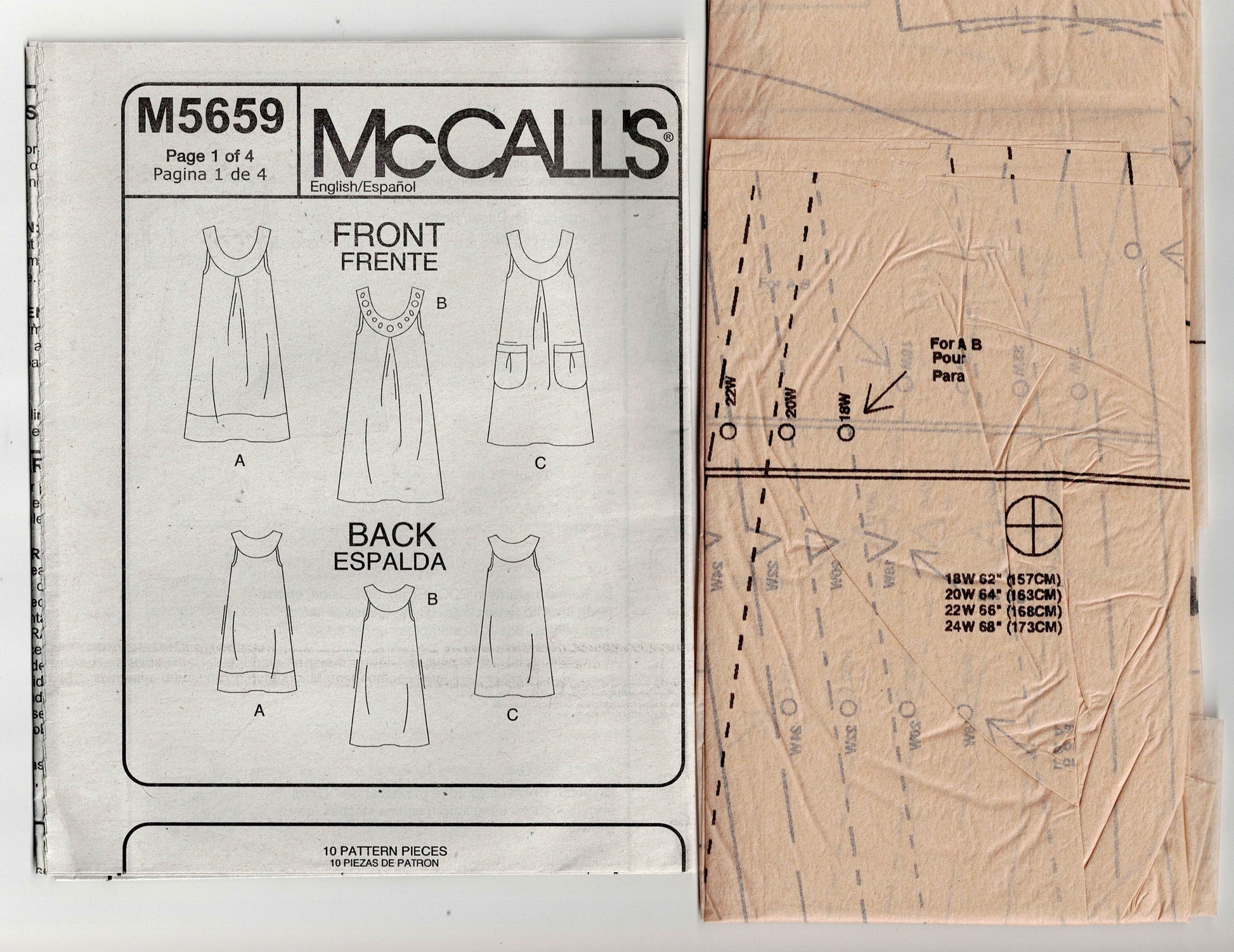 McCall's 5659 Womens Round Yoked Sundress with Pockets Out Of Print Sewing Pattern Size 18W - 24W UNCUT Factory Folded