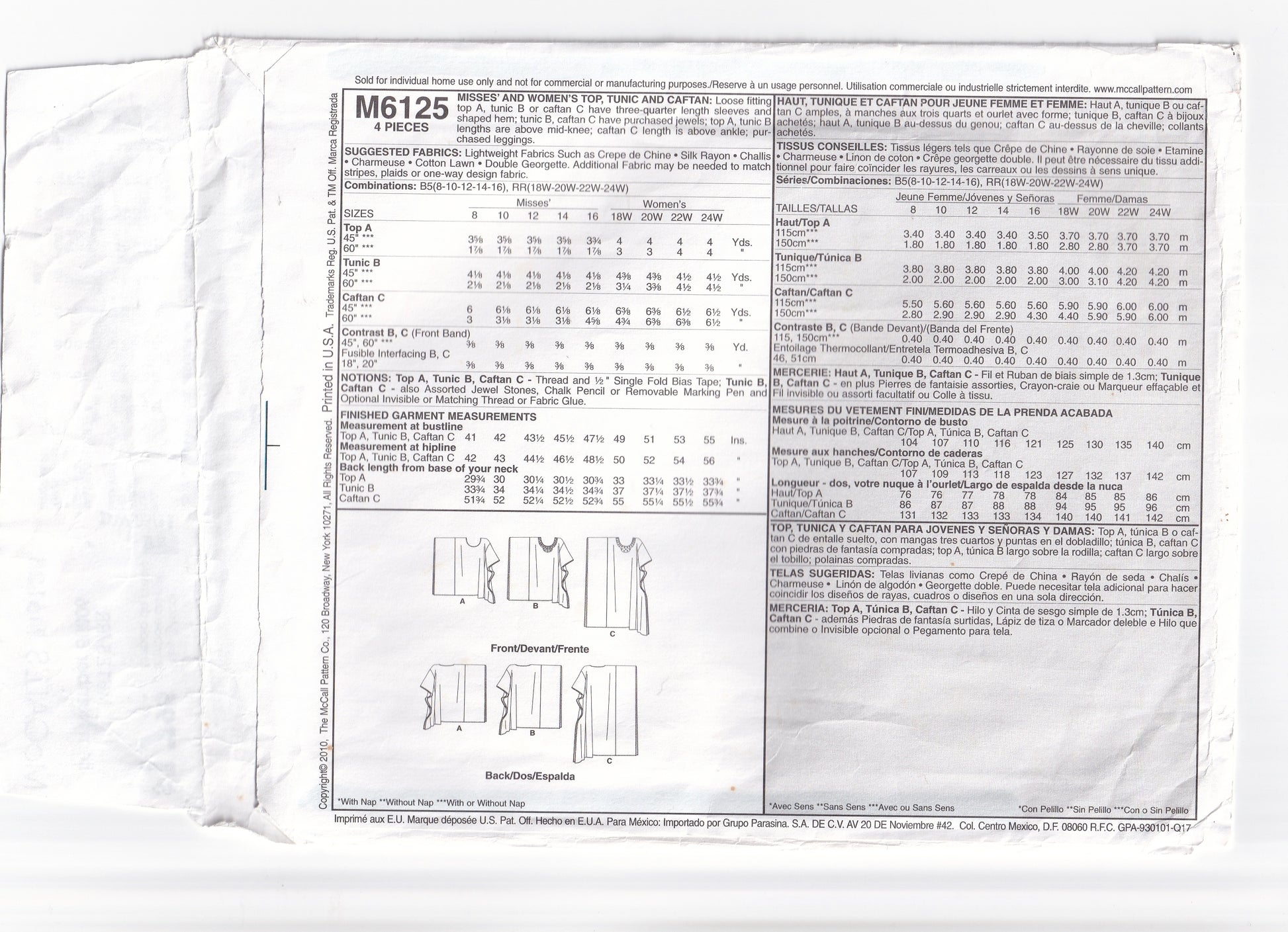 MISSES' AND WOMEN'S TOP, TUNIC AND CAFTAN: