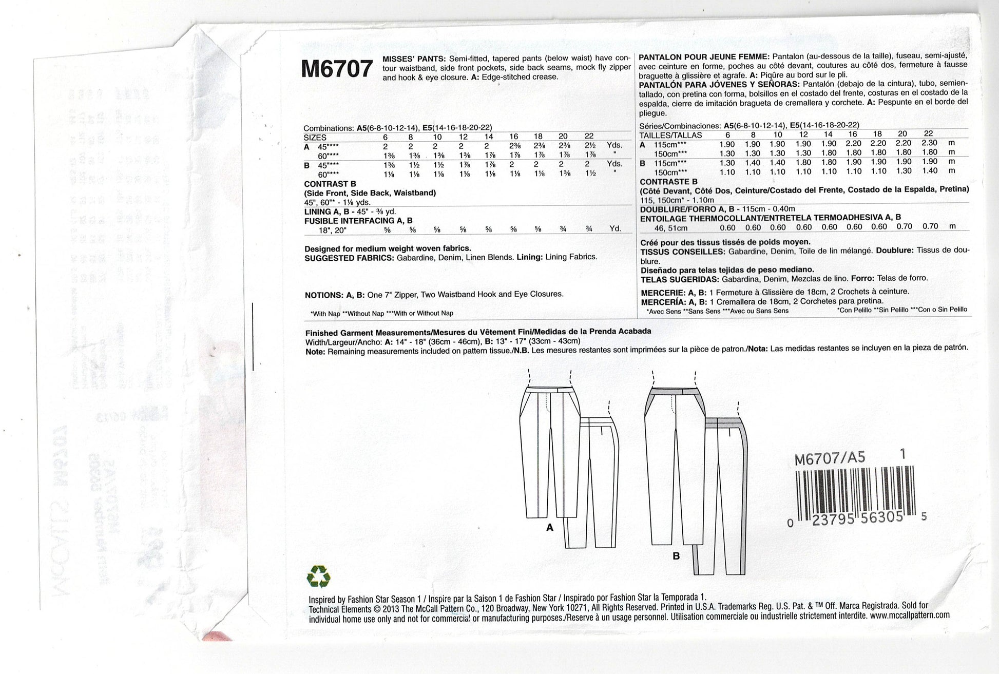 McCall's M6707 sewing pattern, dated 2013, now out of print.