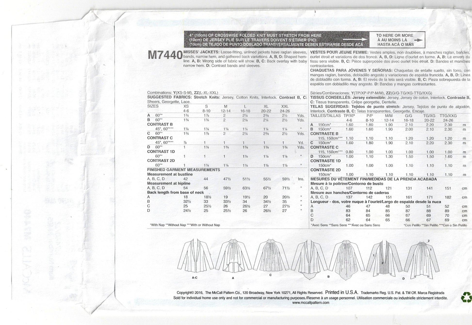 McCall's M7440 sewing pattern dated 2016, now out of print.