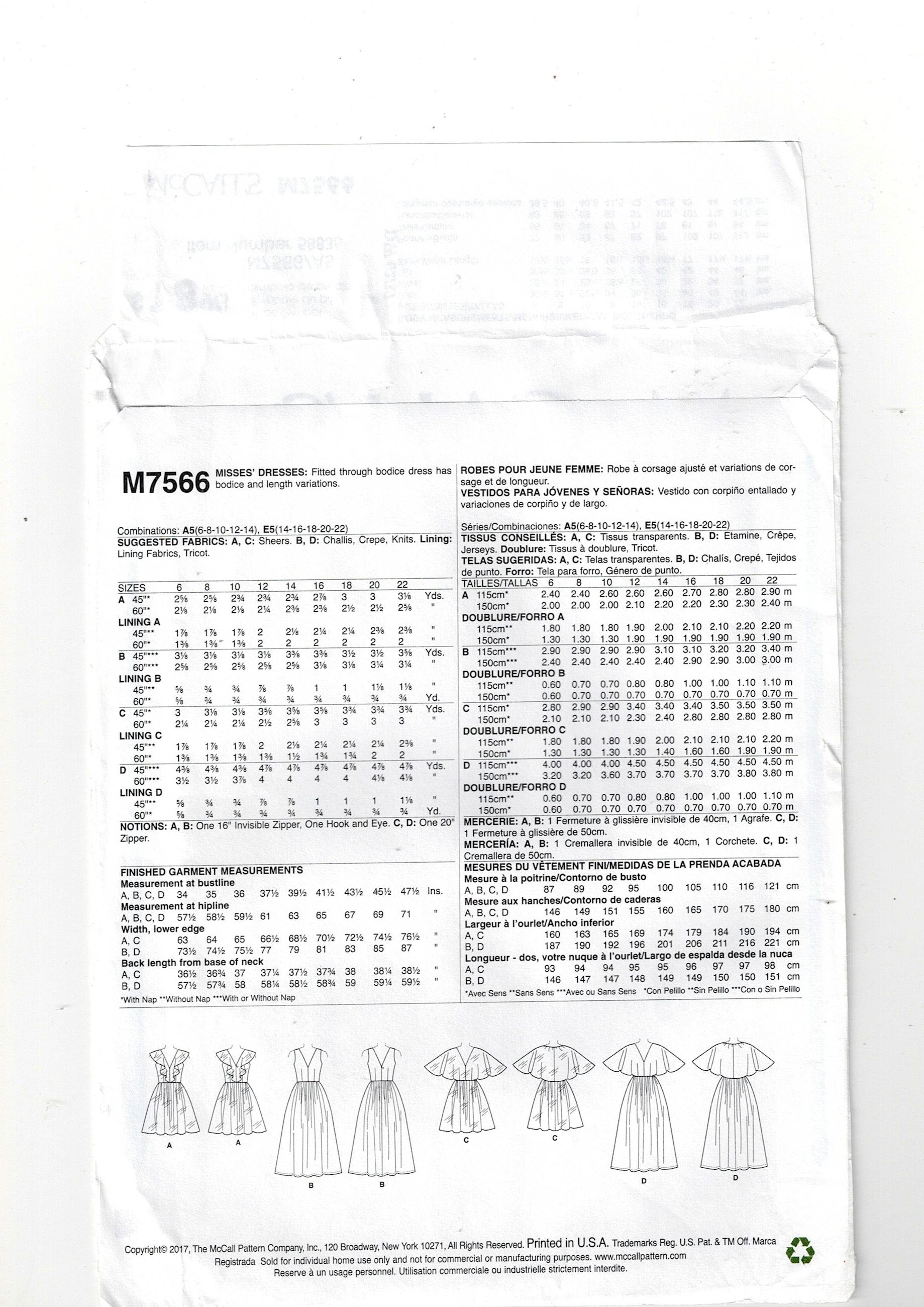 McCall's M7566 sewing pattern, dated 2017, now out of print.