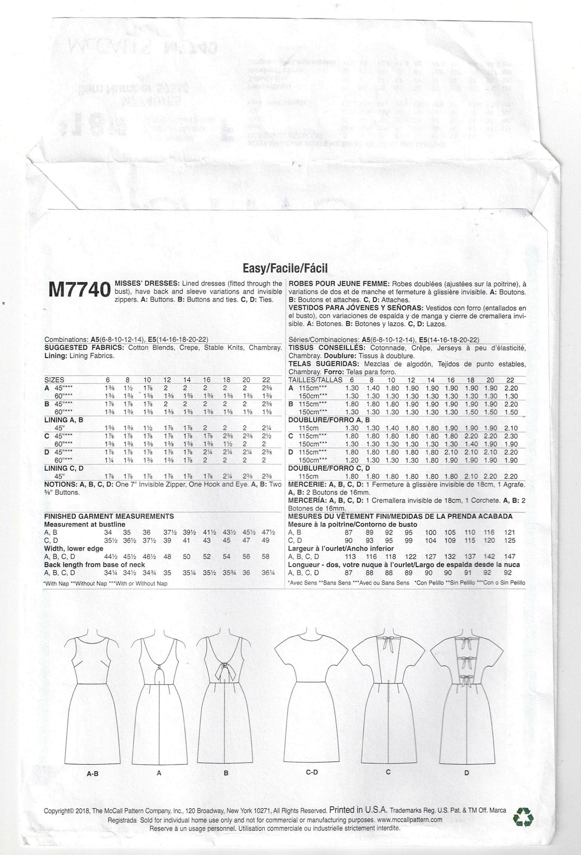 McCall's 7740 vintage sewing pattern, dated 2022, now out of print.