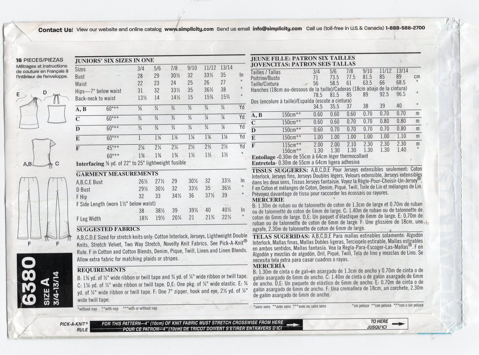 Patrón de costura New Look 6380 para blusas y pantalones elásticos de verano para niñas y adolescentes, agotados, tallas 3/4 - 13/14, sin cortar, pliegues de fábrica