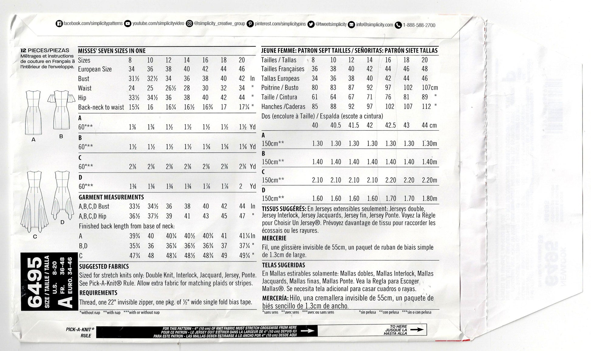 New Look 6495 Womens Knit Dress with Midriff Band & Skirt Godets Out Of Print Sewing Pattern Size 8 - 20 UNCUT Factory Folded