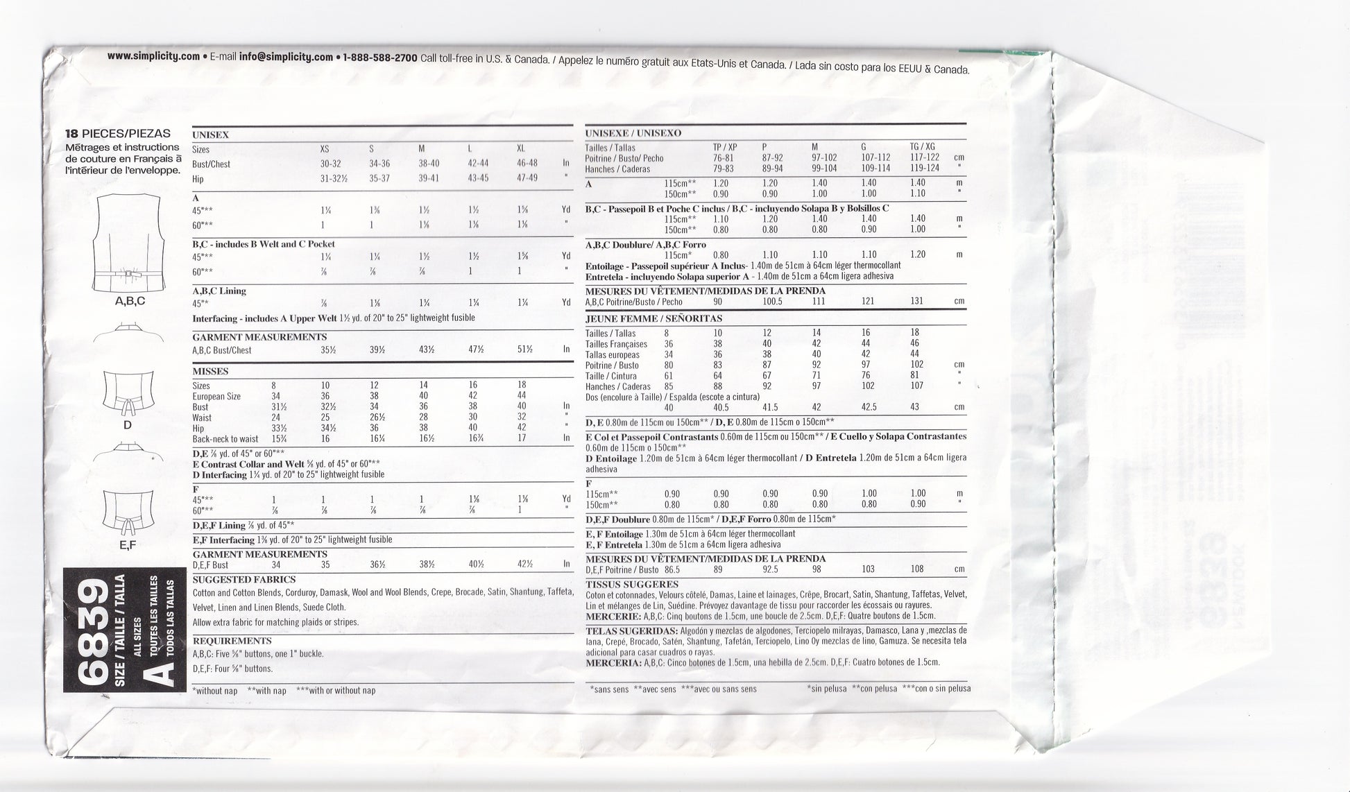 New Look 6839 Womens Mens UNISEX Vests & Halter Waistcoats Out Of Print Paper Sewing Pattern Size XS - XL UNCUT Factory Folded