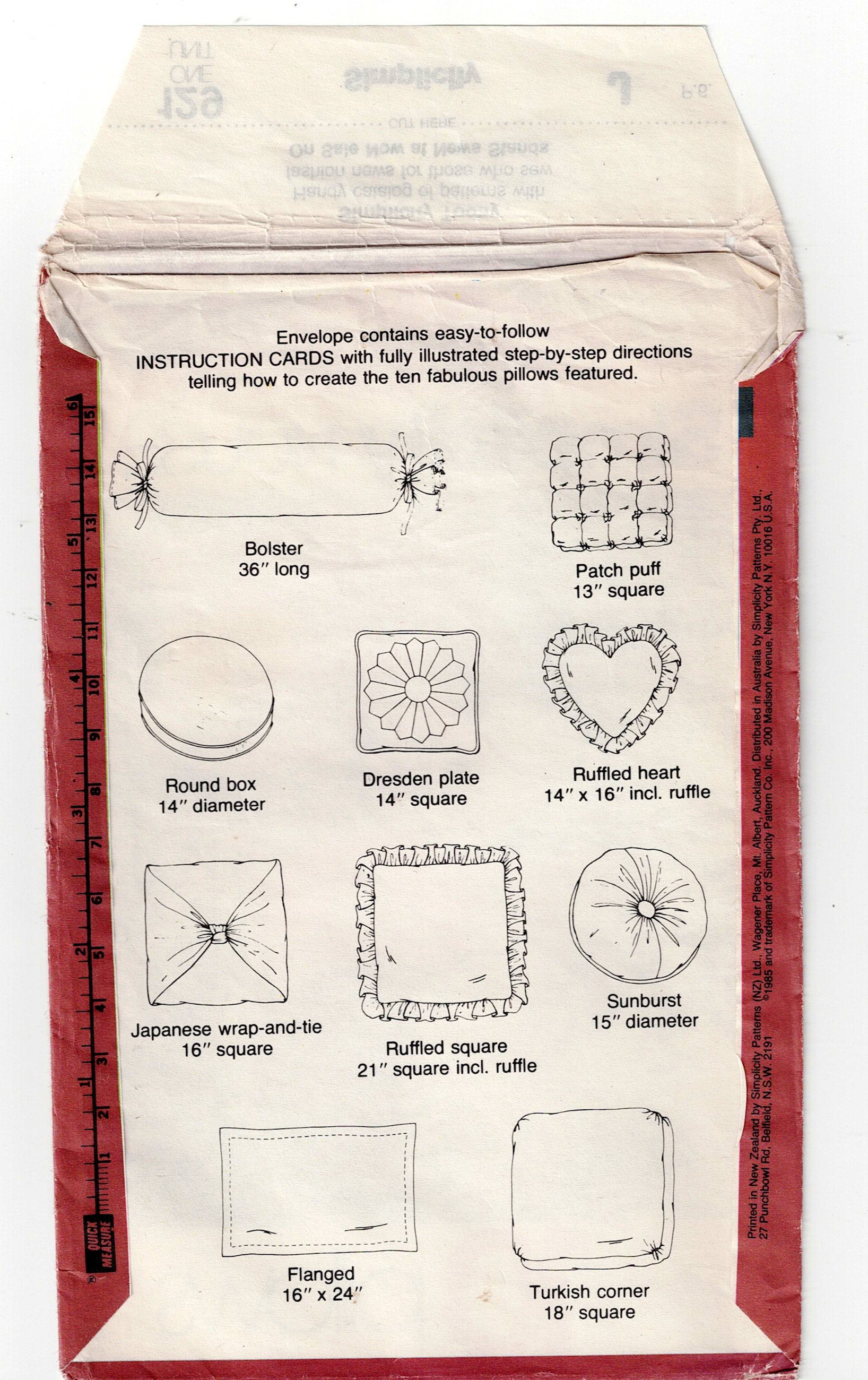 Simplicity 129 Shaped Pillows 1980s Vintage Sewing Pattern Instruction Cards