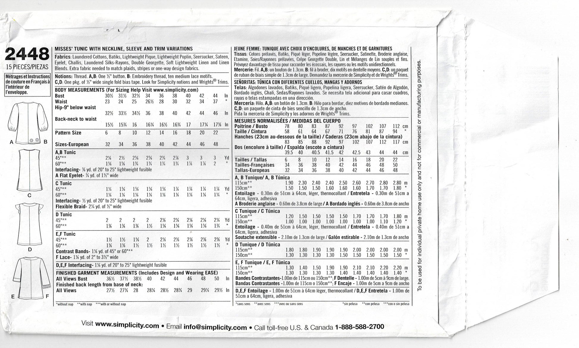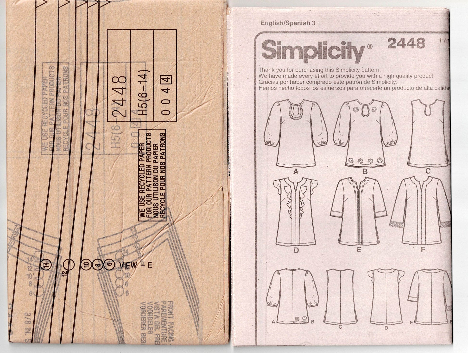 Patrón de costura Simplicity 2448, fechado en 2010, ahora agotado.