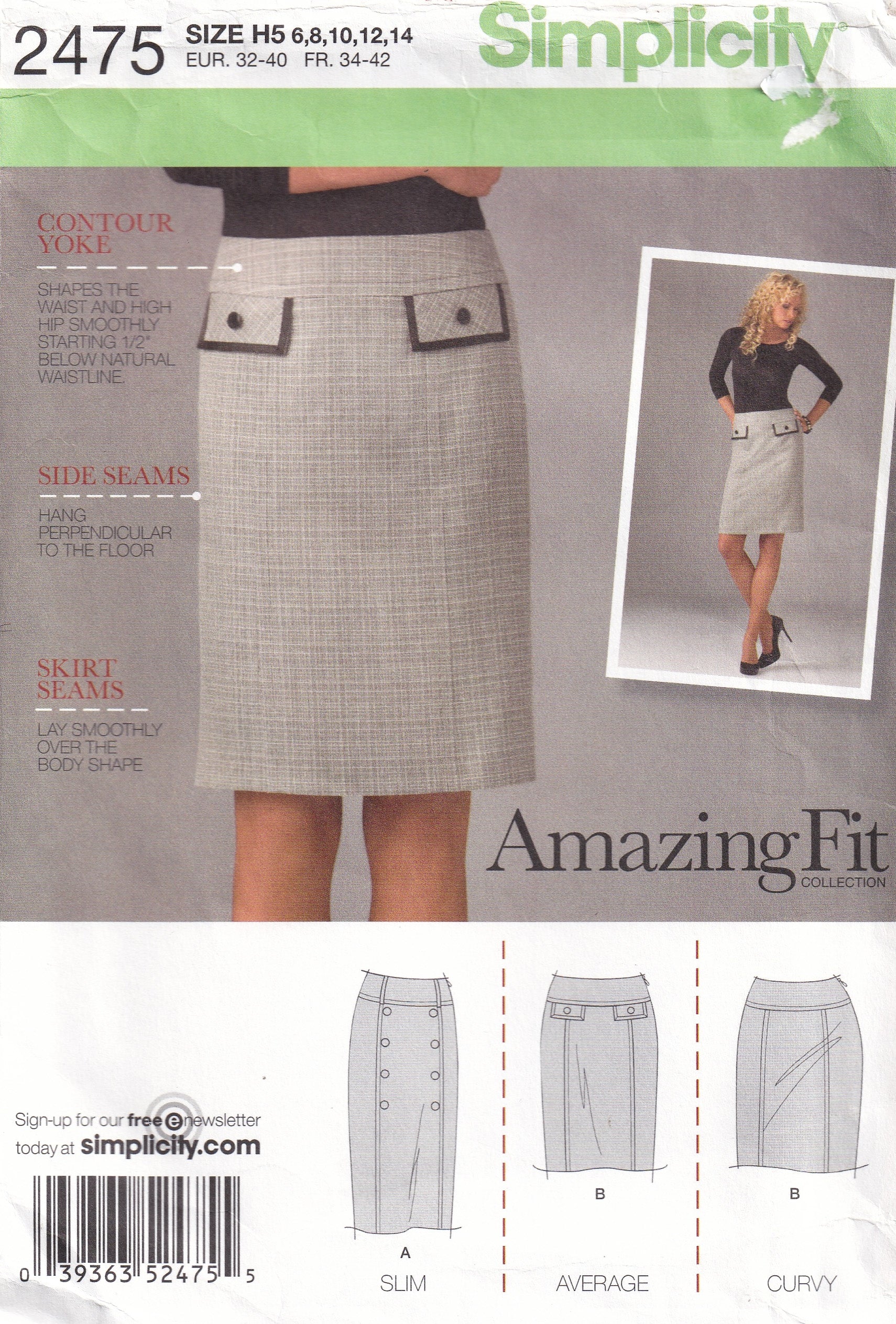 Simplicity 2475 Womens AMAZING FIT Slim Skirt Out Of Print Paper Sewing Pattern Size 6 - 14 UNCUT Factory Folded