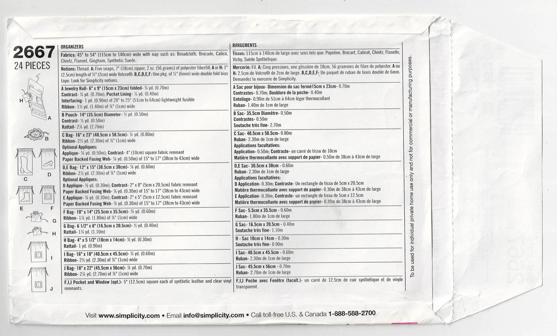 Patrón de costura agotado para bolsos y organizadores de mujer Simplicity 2667 SIN CORTAR, doblado de fábrica