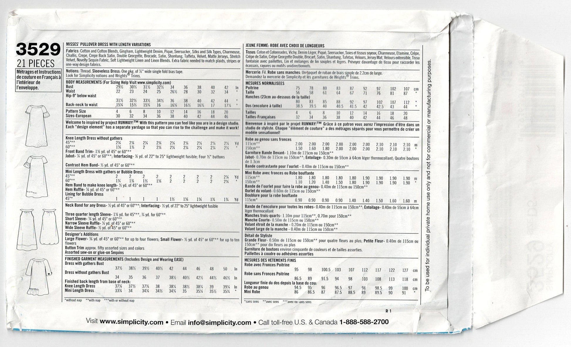 Simplicity 3529 Project Runway sewing pattern, dated 2007, now out of print.