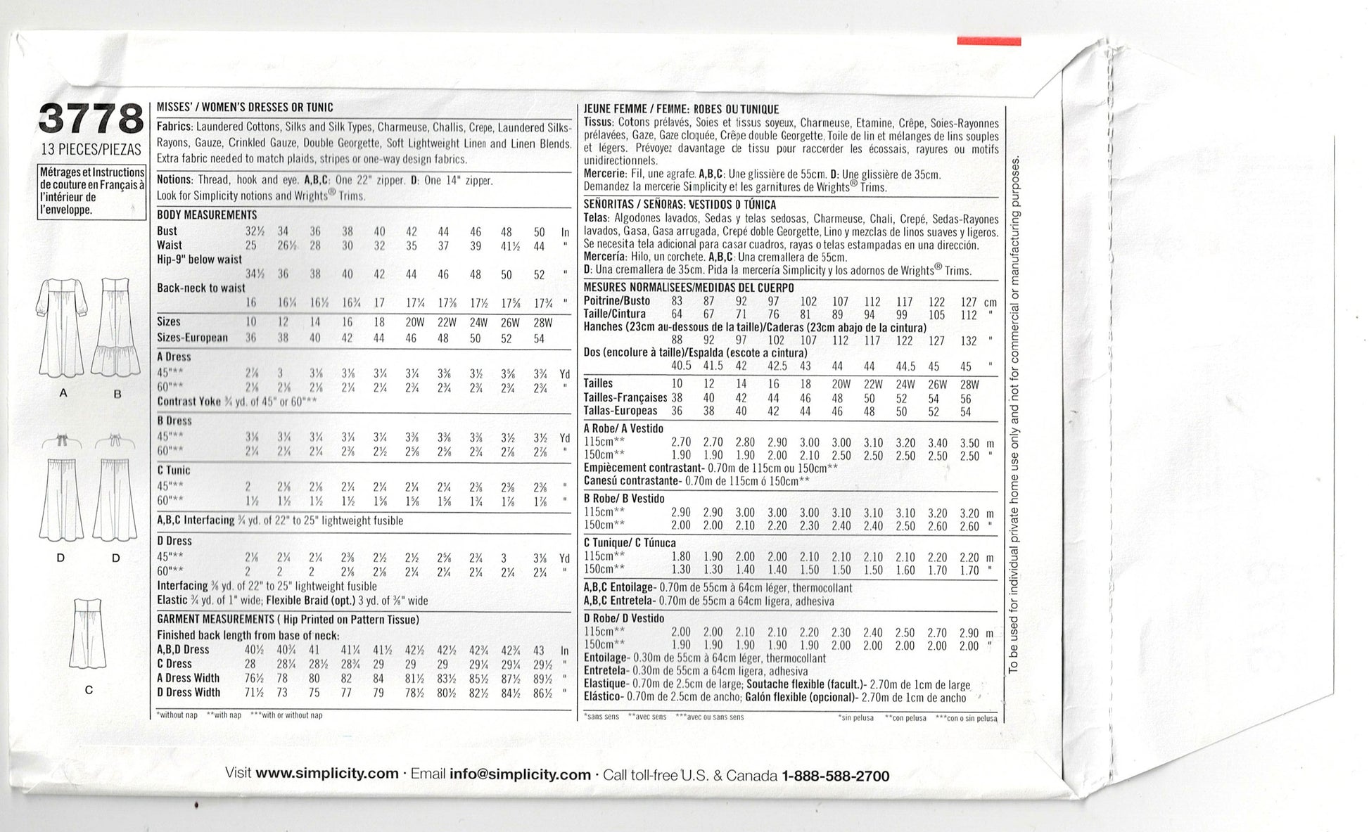 Simplicity 3778 sewing pattern, dated 2007, now out of print.