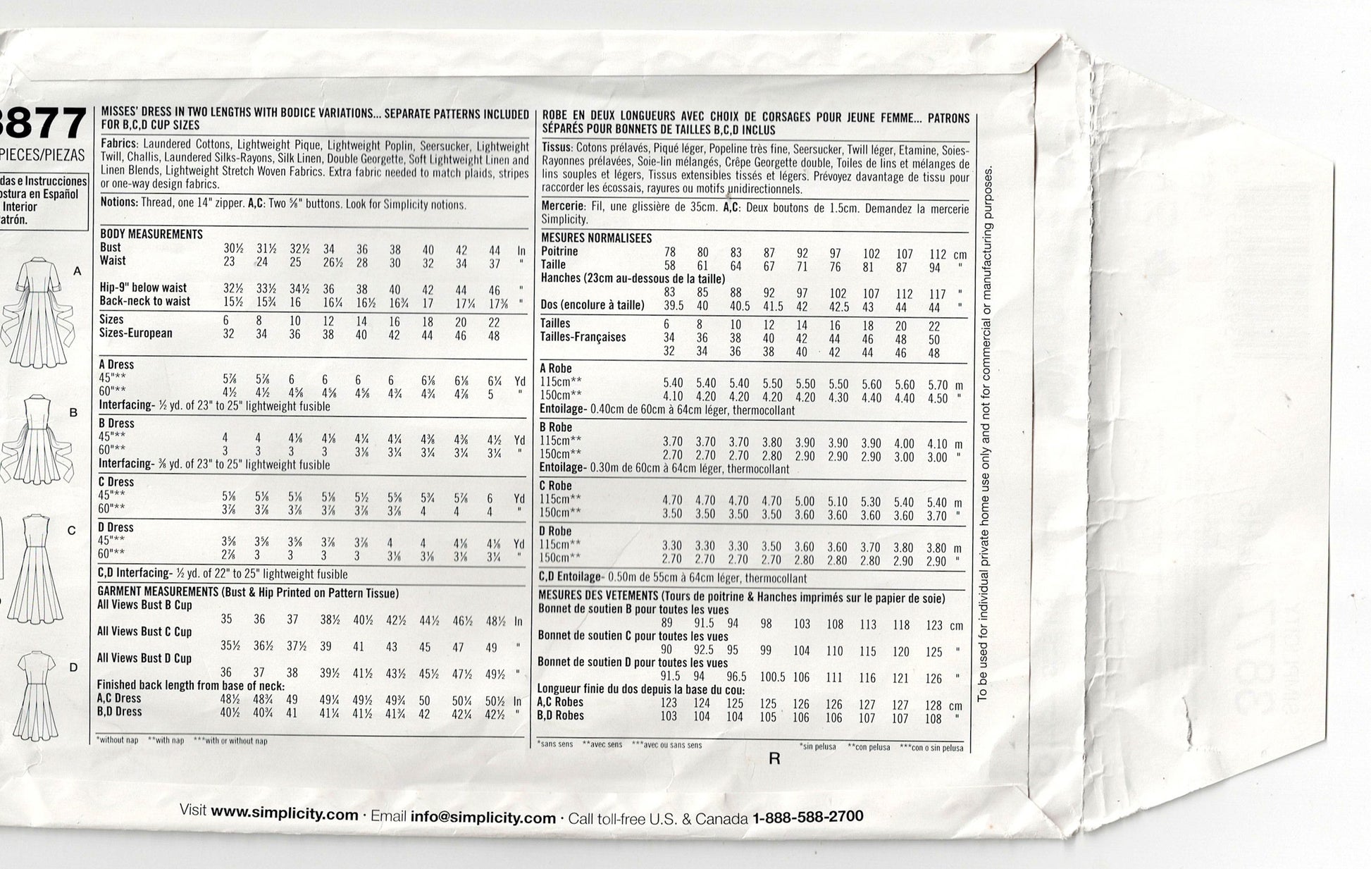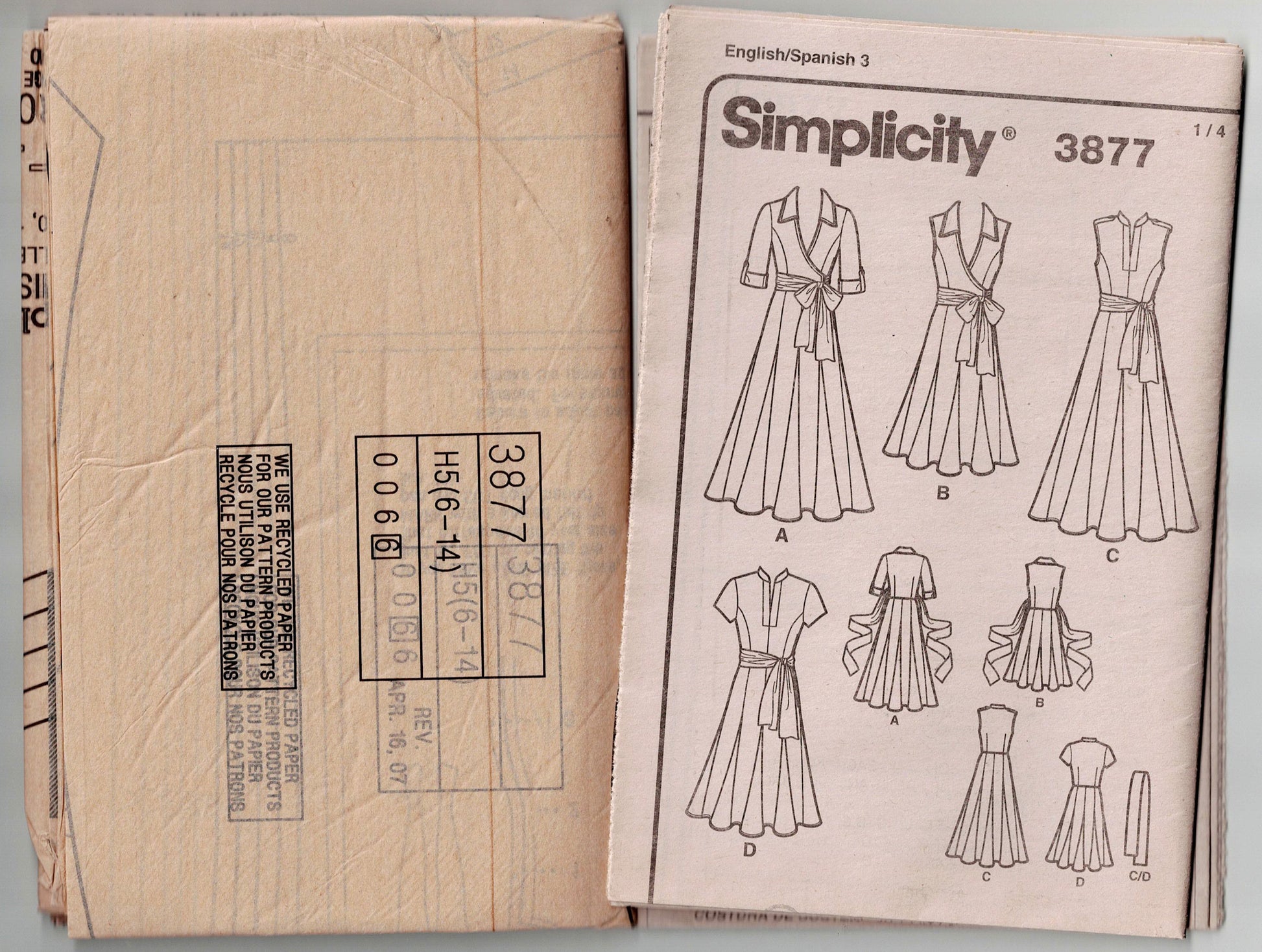 Simplicity 3877 sewing pattern, dated 2013, now out of print.