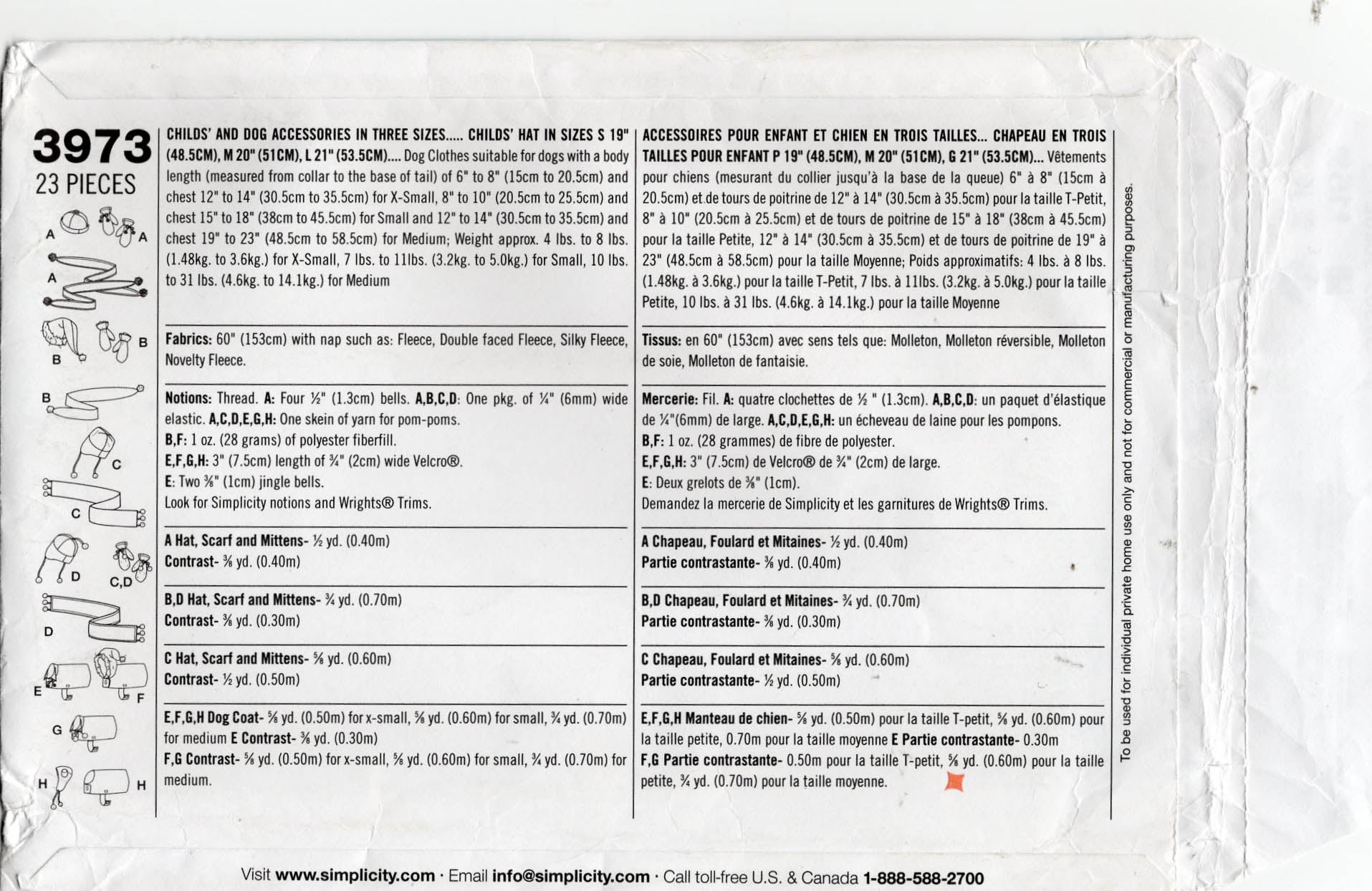 Patrón de costura agotado Simplicity 3973 para accesorios navideños para perros y niños, sin cortar, pliegues de fábrica
