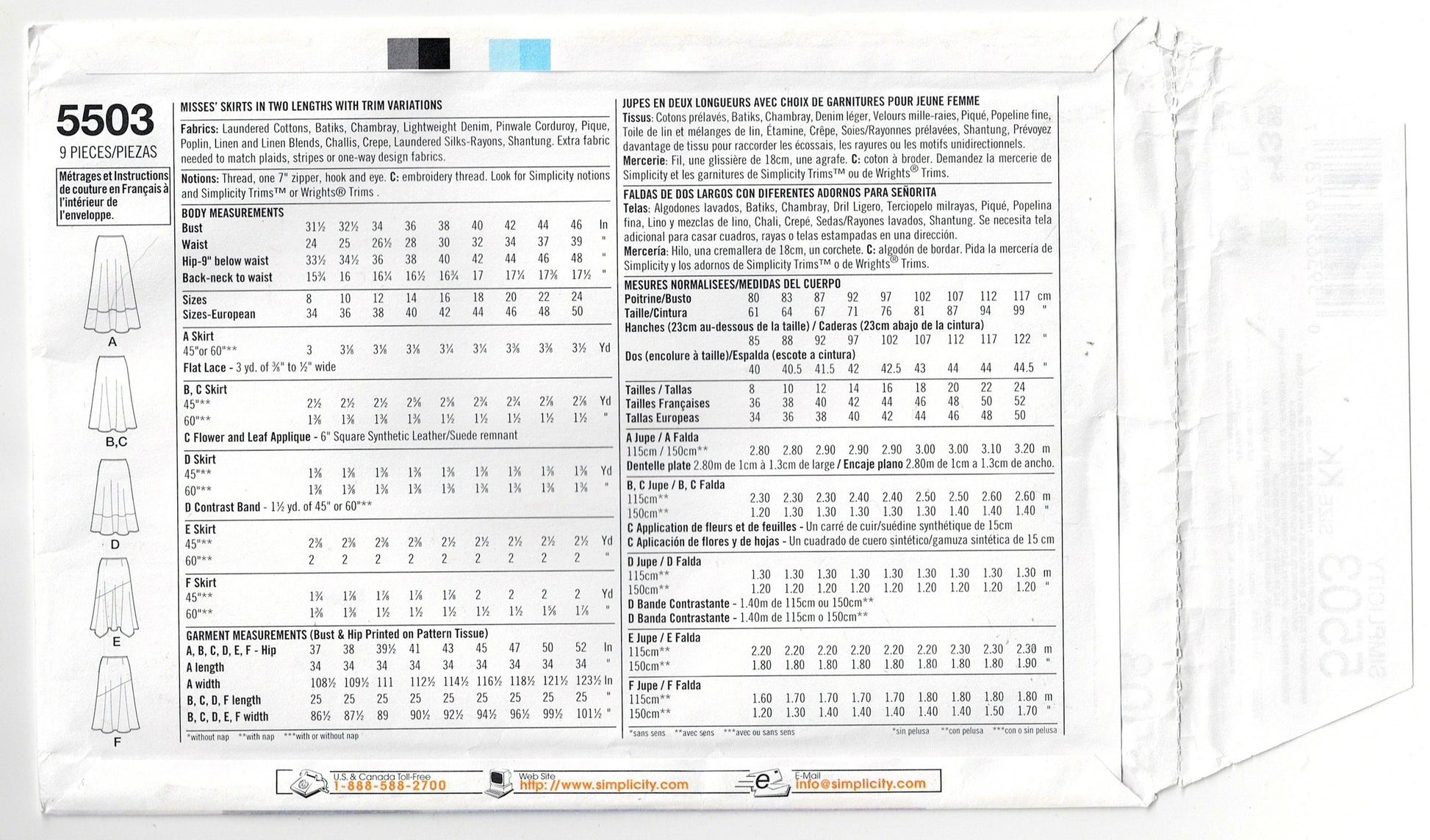 Simplicity 5503 Womens EASY Bias Cut Skirts Out Of Print Sewing Pattern Size 8 - 14 UNCUT Factory Folded
