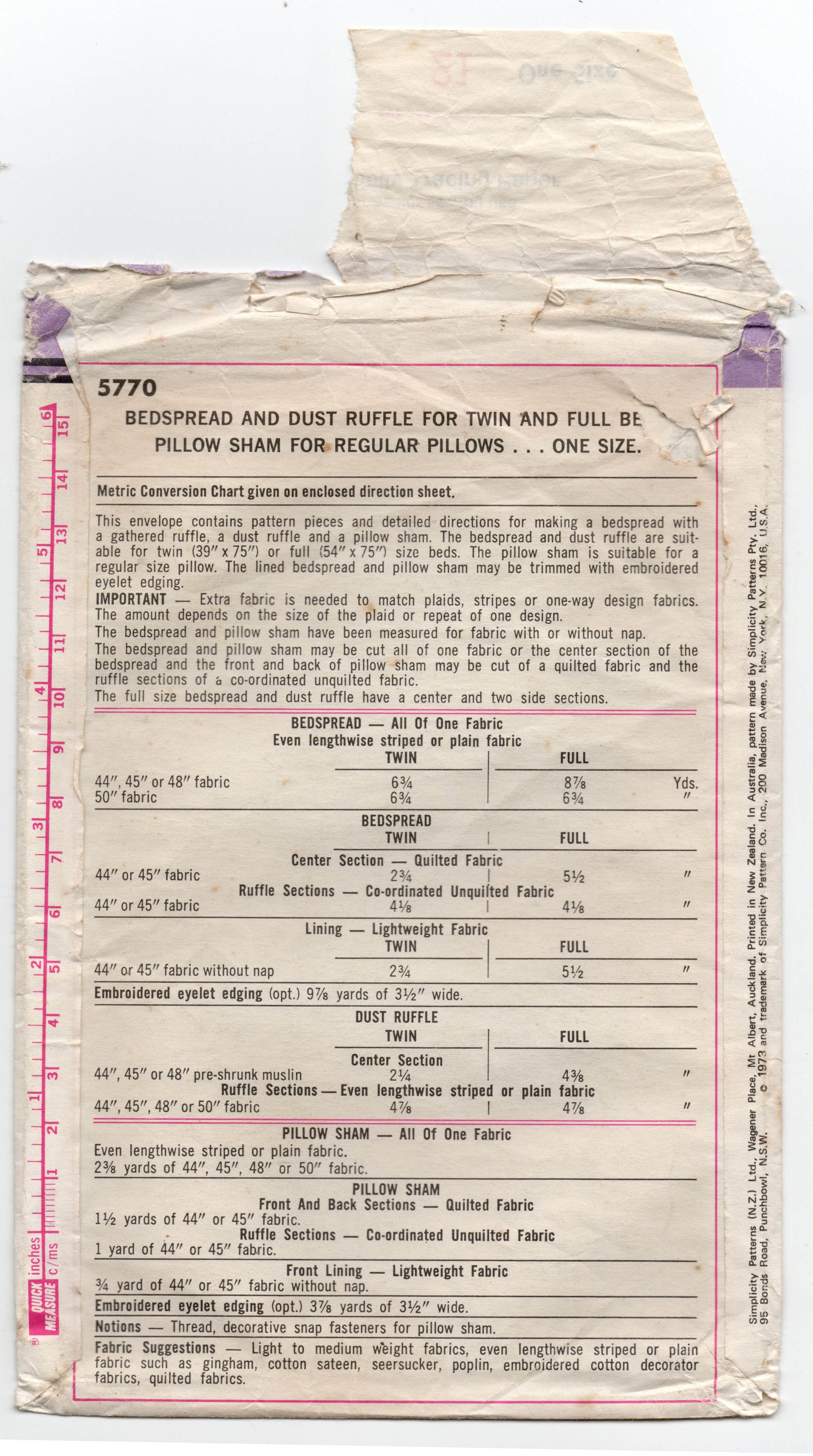 Patrón de costura vintage de los años 70 sin cortar, doblado de fábrica, cubrecama retro Simplicity 5770 con volantes y fundas de almohada