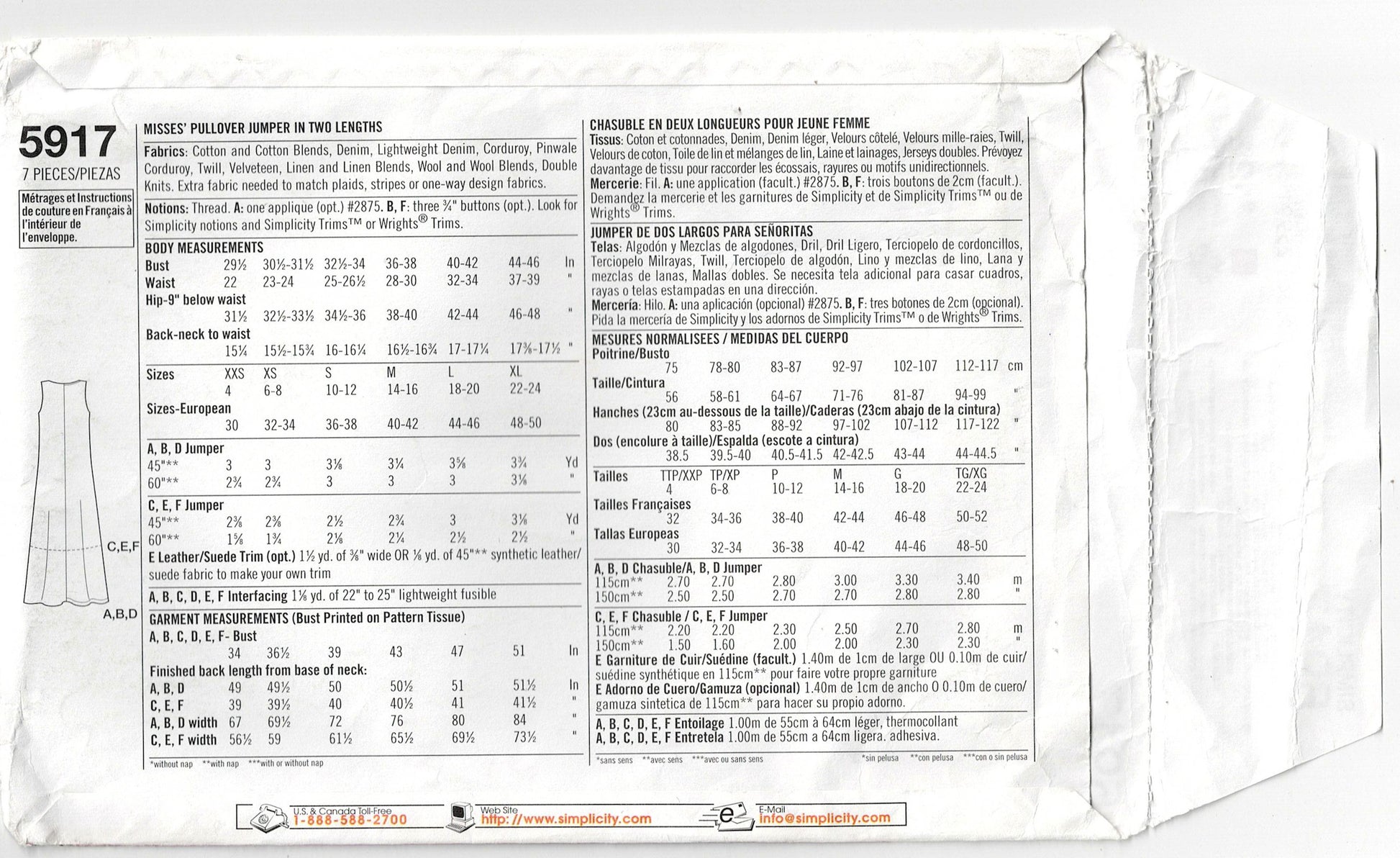 Simplicity 5917 sewing pattern, dated 2000s, now out of print.