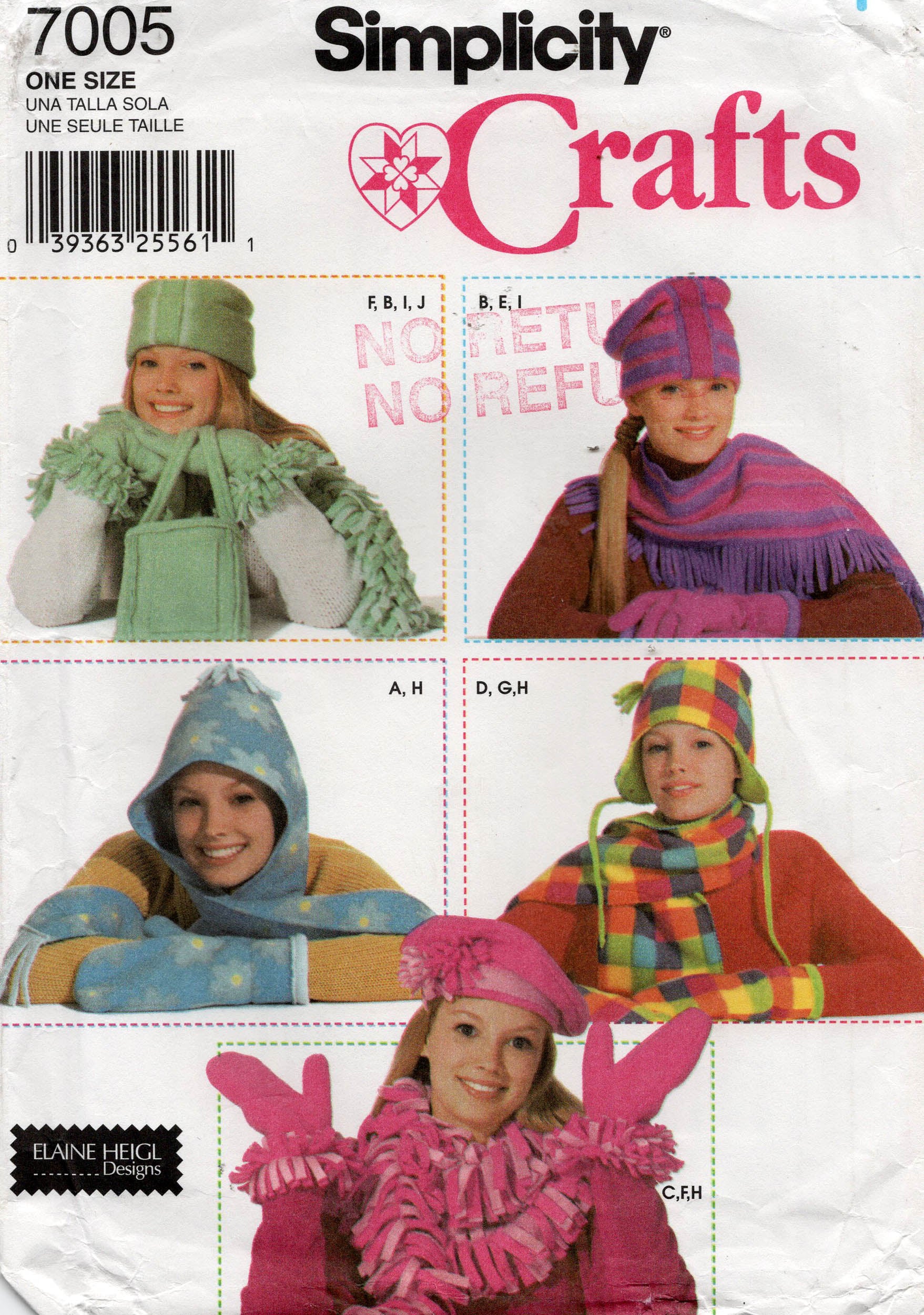 Patrón de costura Simplicity 7005 para gorros, bufandas, mitones y guantes de invierno para mujer, sin cortar, doblado de fábrica
