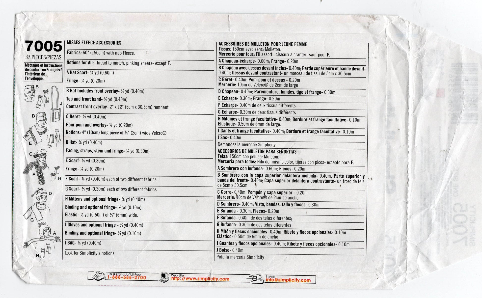 Patrón de costura Simplicity 7005, fechado en 2001, ahora agotado.