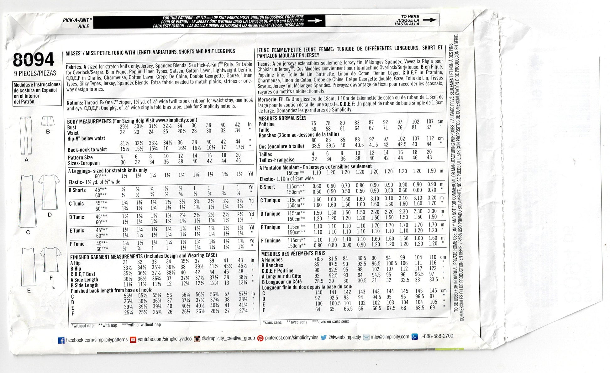 Simplicity 8094 sewing pattern, dated 2016, now out of print.