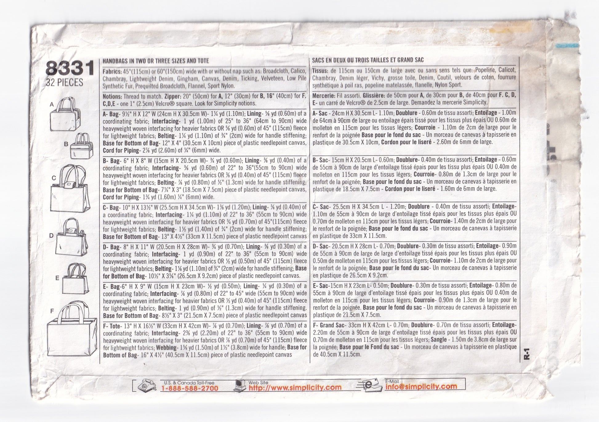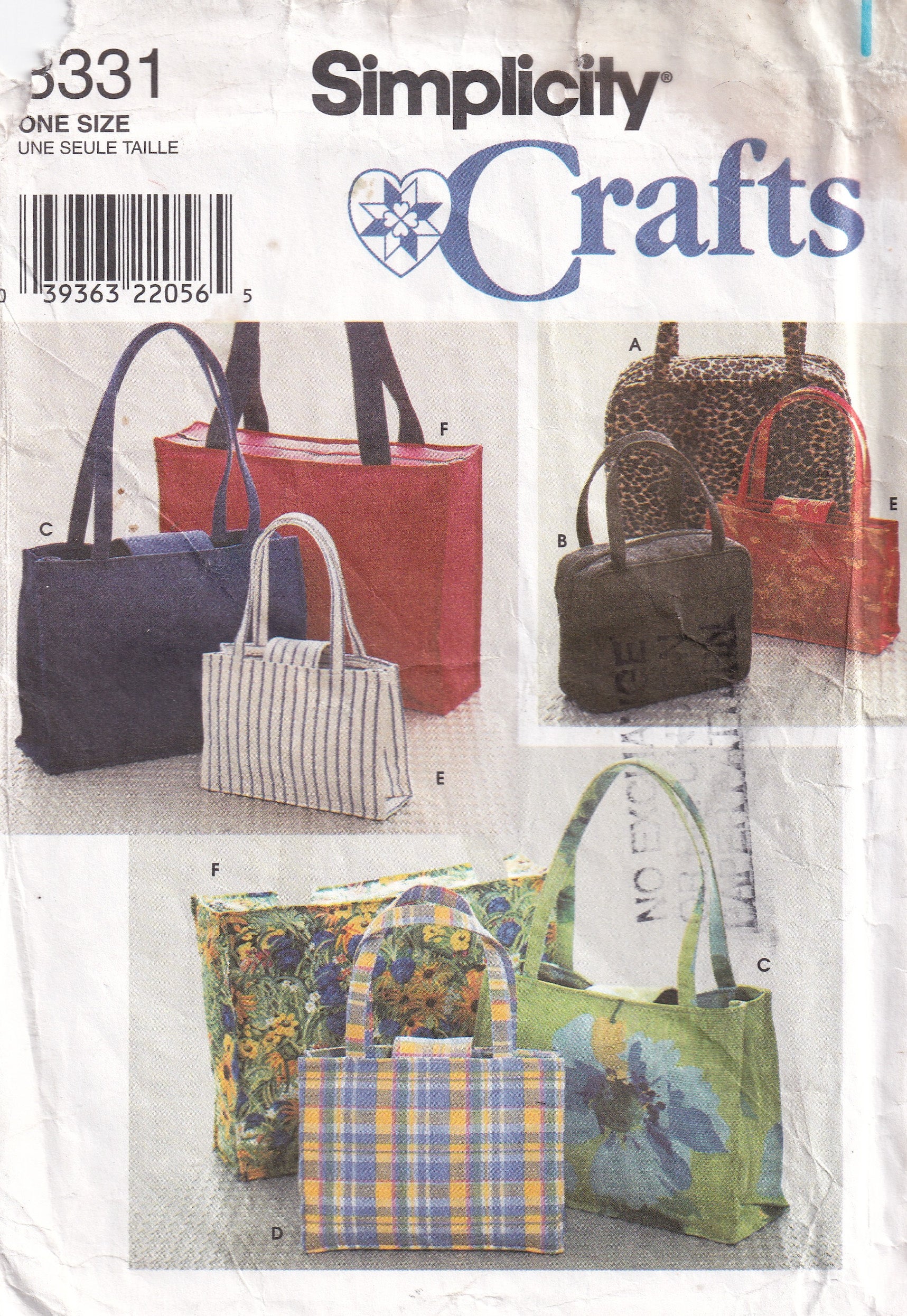 Simplicity 8331 Womens Shopping Beach Tote Bags Out Of Print Paper Sewing Pattern UNCUT Factory Folded